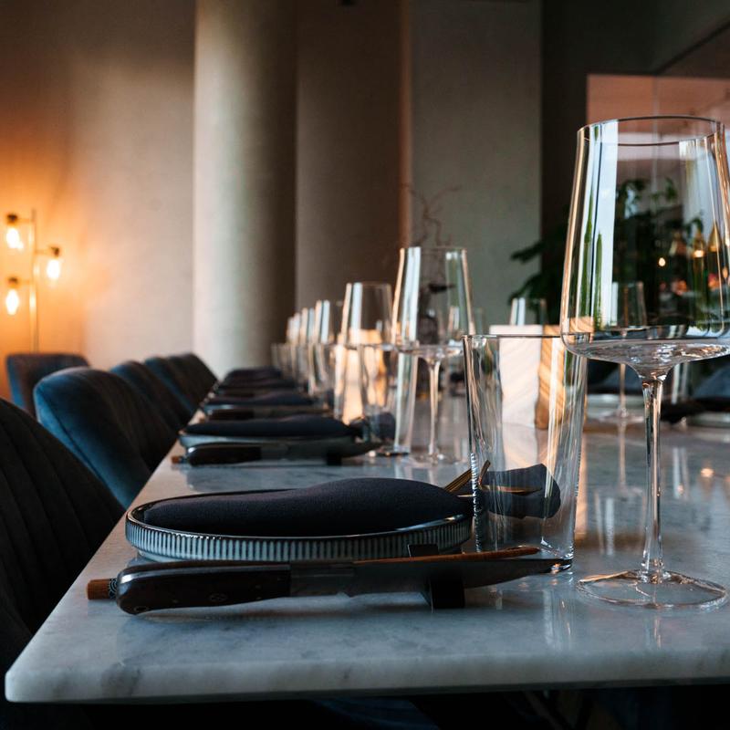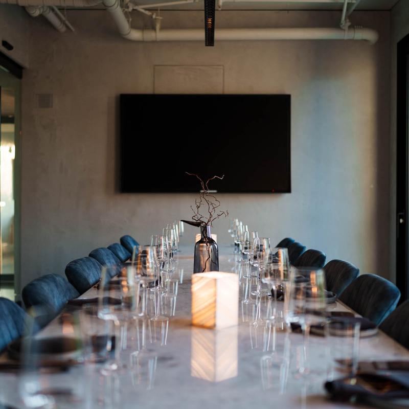 The custom stone table is the perfect centerpiece for your private dining experience. With seating up to 14 people, a private balcony and AV amendites, this room can accommodate corporate business dinners or a special celebration. The glass walls allow you a perfect view of the kitchen while maintaining a controlled environment.